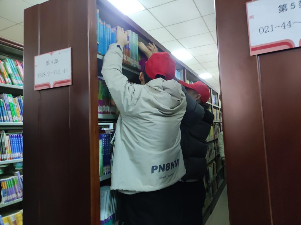 志愿者们根据工作任务分成5组,各组到达各自指定区域后有序高效地开展图书整理活动,各位组长在活动中积极带头,同时对组员进行合理分工。“小红帽”志愿者们参与热情高,态度积极认真。经过大家辛勤整理,书架上原本比较杂乱的图书变得整齐有序。虽然弄脏了手,累酸了腰,但志愿者们毫无怨言,看着自己的劳动成果露出了欣慰的笑容。