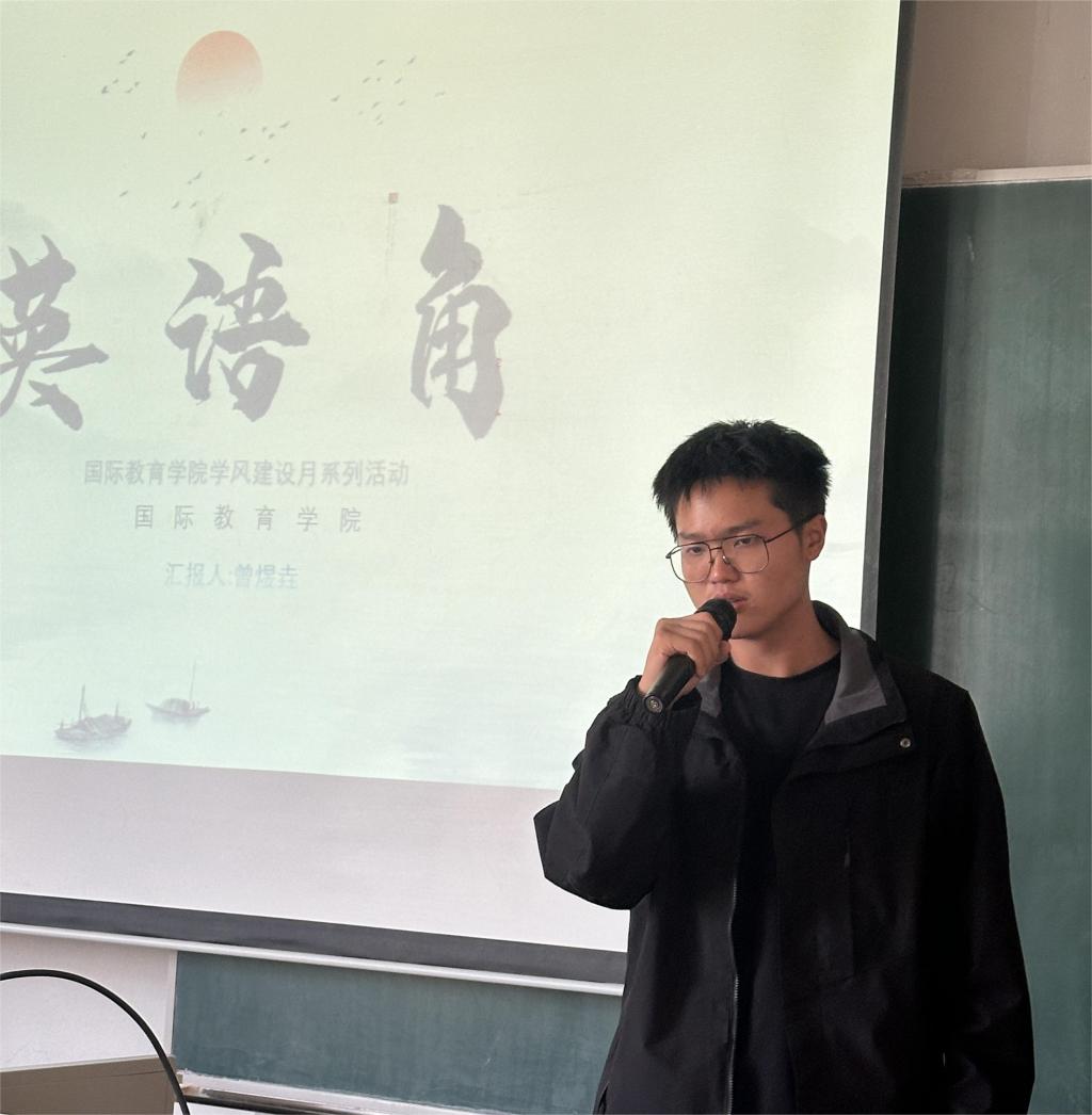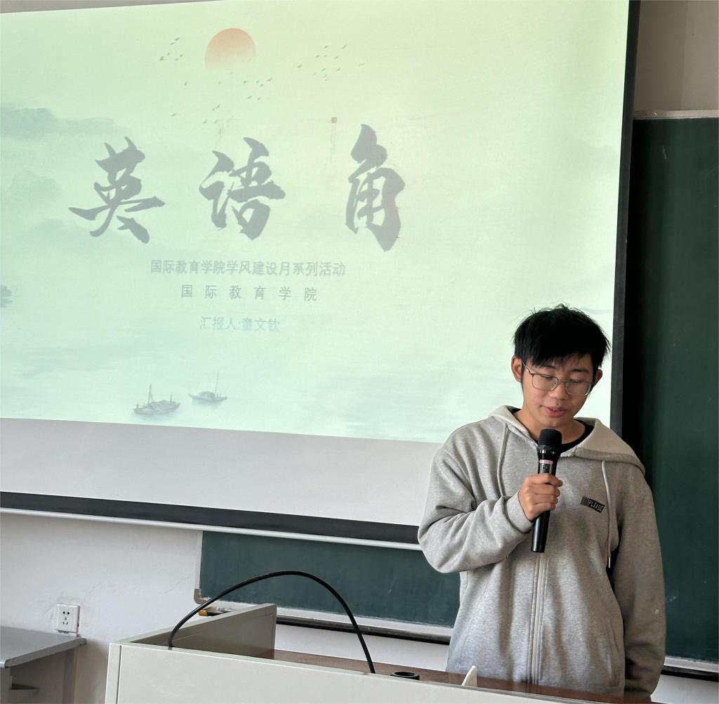自球友会国际教育学院举行“学风建设月”启动仪式后,我院23级同学积极响应学院号召,利用晚自习时间开展了学风建设活动——“英语角”。