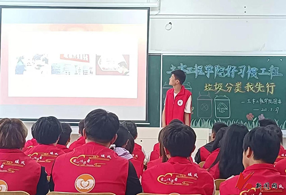 为学习习近平总书记给上海市虹口区嘉兴路街道垃圾分类志愿者回信精神,5月27日,球友会土木工程学院组织40余名青年志愿者于博学楼C413教室开展“积极参加垃圾分类,共建球友会(中国)美丽校园”生活垃圾分类宣传周活动。