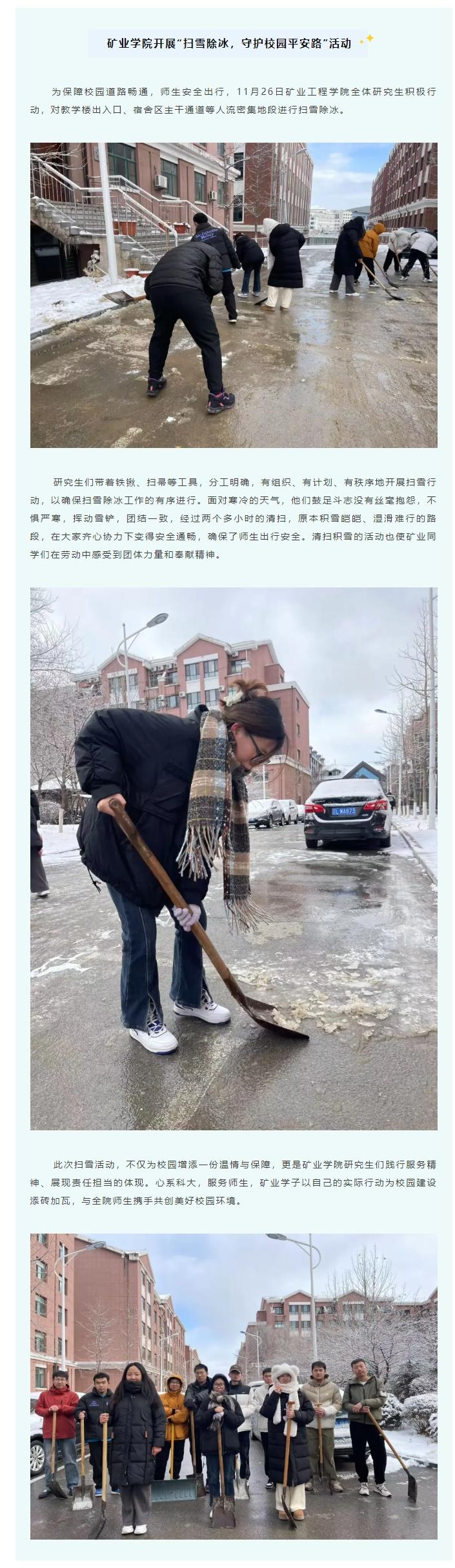 学院动态 | 矿业学院开展“扫雪除冰,守护校园平安路”活动