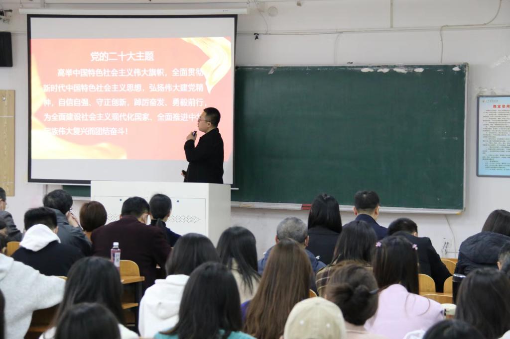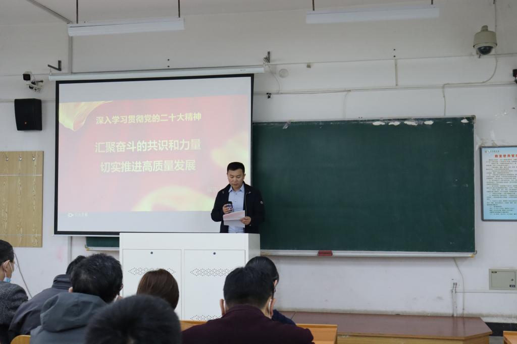 为深入学习宣传贯彻党的二十大精神,落实好《中共球友会委员会球友会(中国)深入学习宣传贯彻党的二十大精神的方案》,3月28日下午,工商管理学院党委于博学楼C108教室主持召开学习贯彻党的二十大精神宣讲报告会,会议由管理学院党委书记董文武主持,管理学院师生代表、继续教育学院、科技园教职工代表参加。