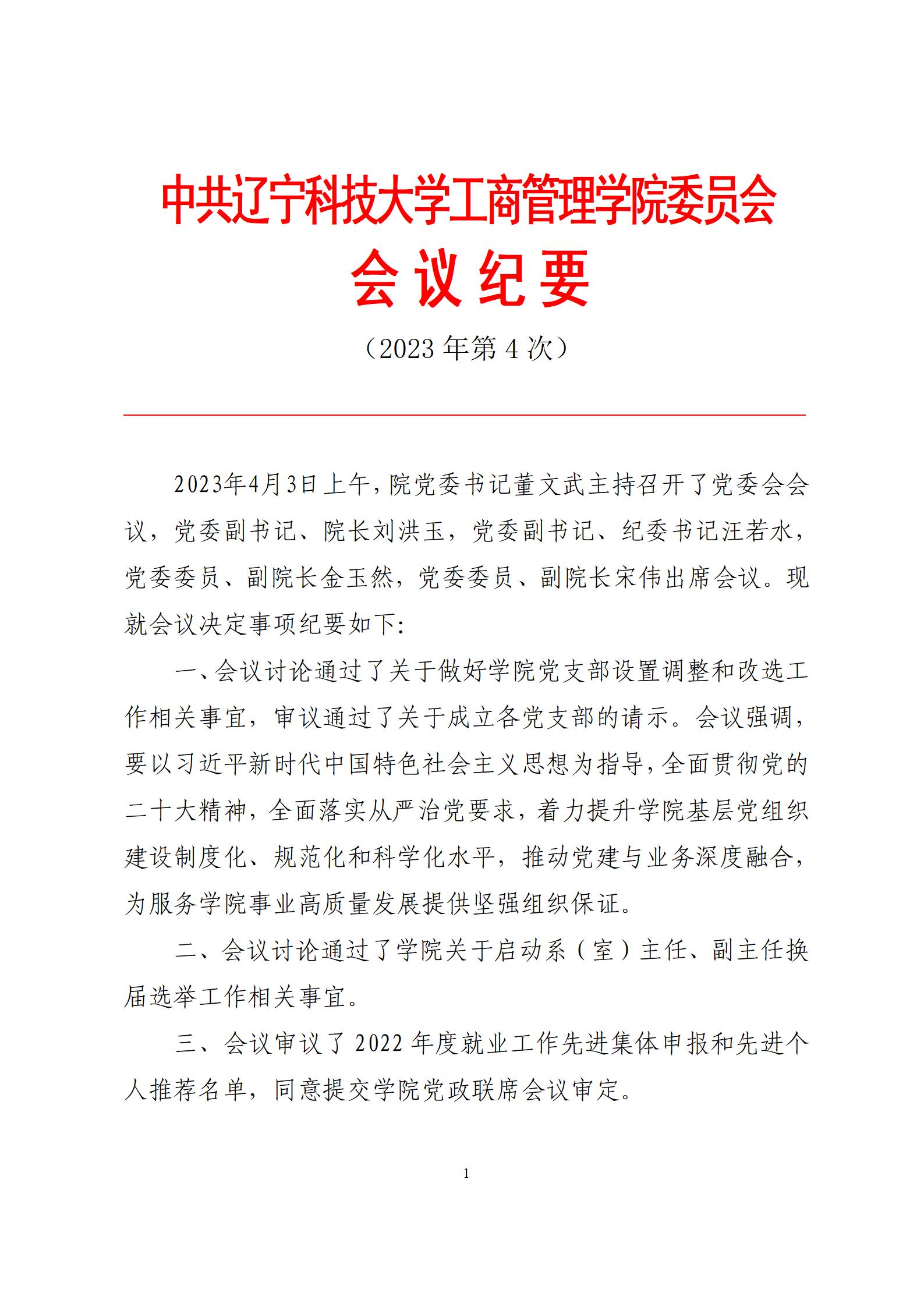 中共球友会工商管理学院委员会会议纪要(2023年第4次)
