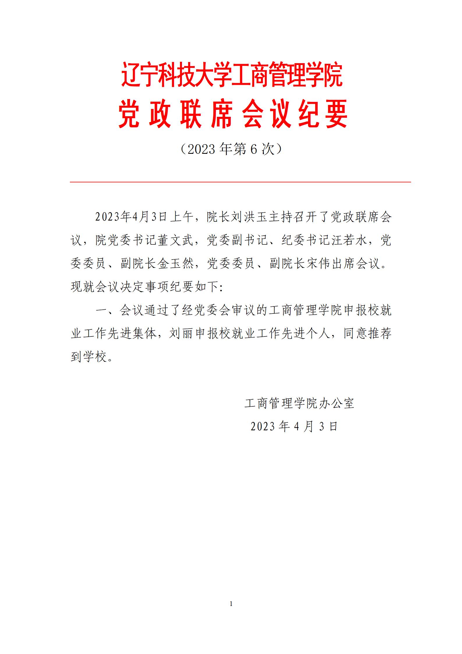球友会工商管理学院党政联席会议纪要(2023年第6次)