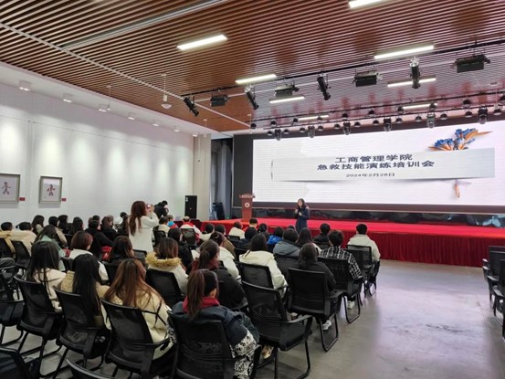 2月28号下午,工商管理学院邀请了校医院和鞍山市红十字会的专家开展急救技能演练培训会,本次培训由鞍山市红十字会工作人员主讲,旨在帮助同学们冷静、迅速、安全地面对生活中出现的突发情况,为生命保驾护航。