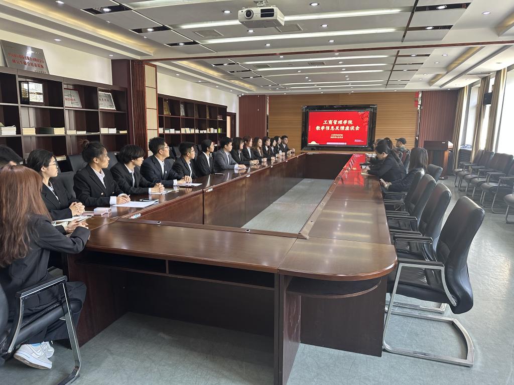 2025年4月25日下午,管理学院在411会议室召开教学信息反馈座谈会。学院副院长金玉然、各专业教师代表与学生代表齐聚一堂,围绕教学质量提升与人才培养模式展开深入交流。
