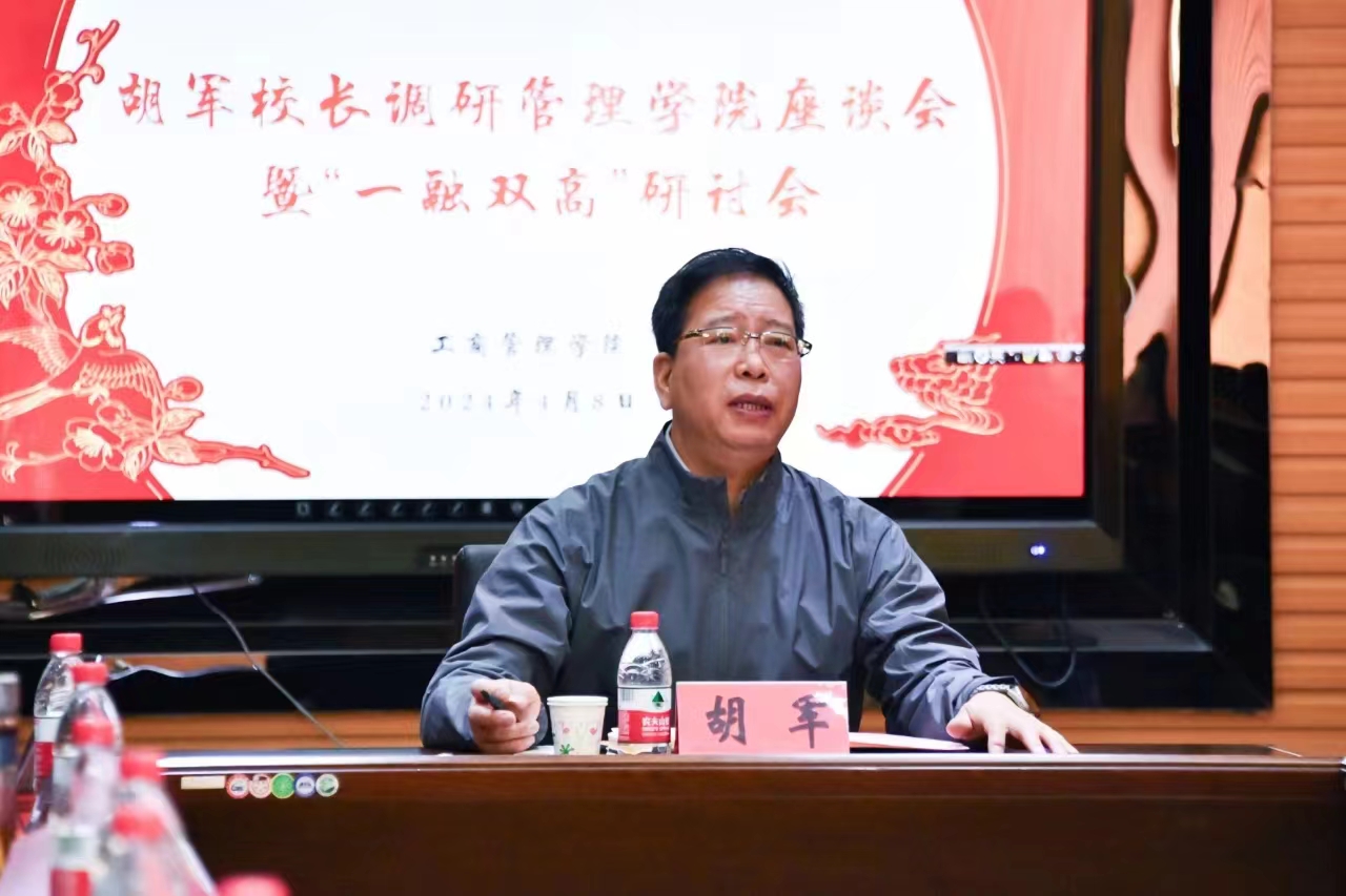 4月8日上午,球友会工商管理学院召开“一融双高”专题研讨会。校党委副书记、校长胡军出席会议并讲话。管理学院领导班子成员、系室主任、党支部书记及科级以上干部参加研讨。