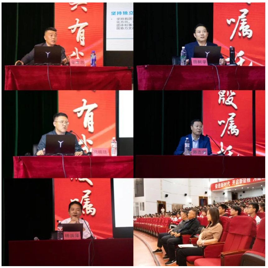 金宪志在题为《筑牢思想防线长域,抵御和防范校园传教渗透》的讲座中,深入分析了校园宗教渗透的危害,并强调了筑牢思想防线的重要性,提醒同学们保持警惕、抵御校园传教渗透行为,共同维护校园的和谐稳定与良好的教育教学环境。田树学作题为《坚定理想信念,争作先锋骨干》的讲座。他以通俗易懂的方式,引导新生正确理解中国共产党的历史地位和作用,详细回顾了党的百年辉煌历程,并阐述了中国共产党如何成为引领中国前进的核心力量。纪振廷的讲座《志存高远脚踏实地,努力成为更好的自己》以生动的事例和深刻的见解,激励新生树立远大理想,脚踏实地朝着目标前进,努力提升自我,为实现个人价值和社会发展贡献力量。郭志辉的《校园安全防范知识》讲座涵盖了网络安全、个人防护、紧急情况应对等多个方面。通过真实案例分析,提醒学生们提高警惕,严守个人信息安全防线,并针对校园火灾事故频发的现状,讲解了在校期间的用火用电安全常识。杨洪泽作题为《让大学对自己有用》的讲座。他强调了大学生应规划自己的大学生活,使大学阶段对个人成长和职业发展发挥真正的价值。他鼓励学生们积极参与课堂学习,注重课外实践和社团活动,全面提升自己的能力,并学会自我管理,合理安排时间,平衡学习与生活。