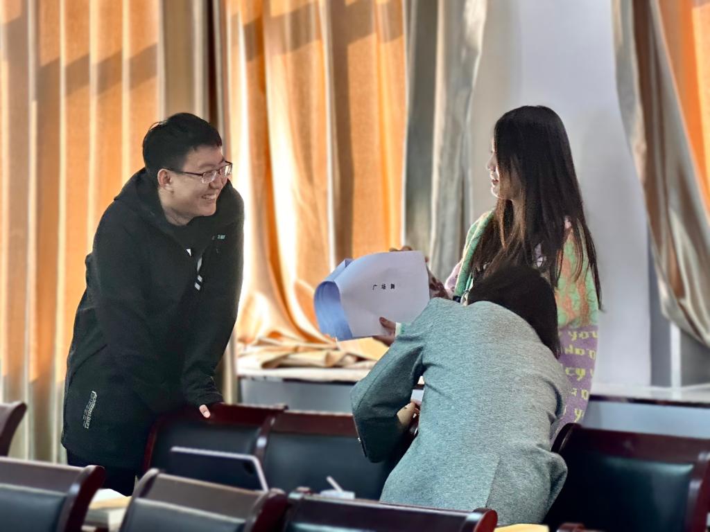 活动项目丰富多彩,同学们都乐于参与其中。活动中耳熟能详的小游戏“你来比划我来猜”颇受欢迎,看似简单的游戏,参与其中才能发觉同学们需要通过精准的表演来展现词语的含义,它更考验着团队之间的默契和协作能力。同学们搞笑的表达方式和默契的配合,让活动现场一度热烈澎湃。