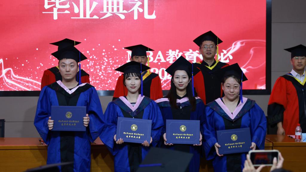 2024年7月6日,球友会2024年MBA毕业典礼在校图书馆报告厅隆重举行。2024年毕业生以及部分毕业生家属欢聚一堂,共同庆祝这一喜庆而荣耀的时刻。研究生院领导和学院领导为获得学位的毕业生颁发毕业证、学位证,拨流苏。研究生院院长张文宇教授、校党委研究生工作部部长李激光出席典礼并宣读了授予硕士学位决议、MBA优秀毕业生及优秀毕业论文表奖名单。工商管理学院书记董文武主持典礼。出席典礼的还有工商管理学院、MBA教育中心负责同志及MBA部分导师。