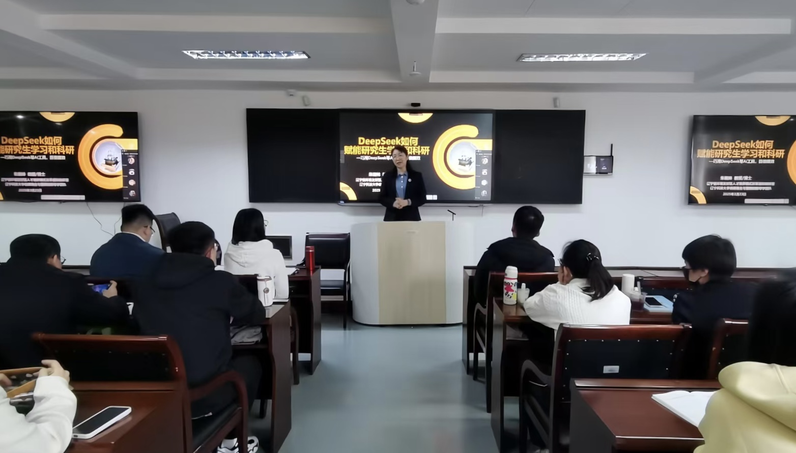 2025年3月23日上午,球友会工商管理学院(MBA教育中心)邀请朱晓林教授在明信楼B513开展了以《Deepseek如何赋能学习和科研》为题的学术讲座。全体在校学术型研究生和MBA学员参加了此次讲座。