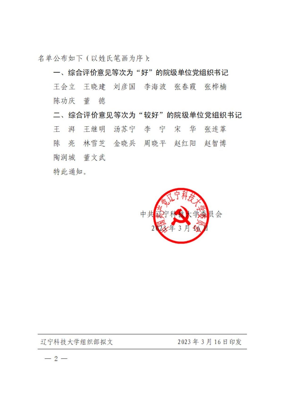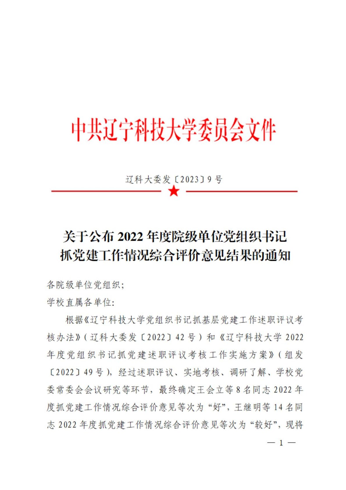 球友会(中国)公布2022年度院级单位党组织书记抓党建工作情况综合评价意见结果的通知