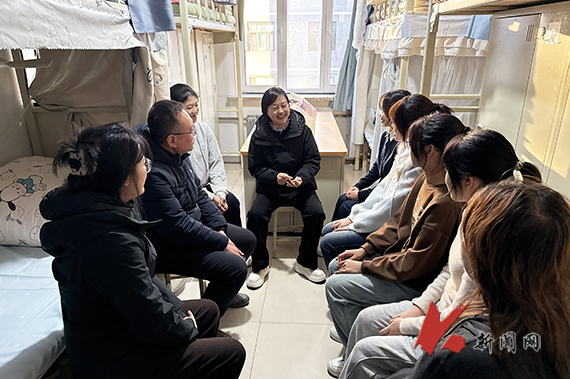 走进学生寝室,高姝娜仔细查看寝室的居住环境、卫生状况和设施配备,详细询问学生的学习进度、专业认知、生活情况以及遇到的困难和问题。在倾听同学们的分享后,她对大家积极向上的精神面貌和整洁有序的寝室环境给予了充分肯定,鼓励同学们珍惜大学时光,不负青春韶华。