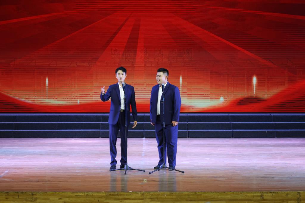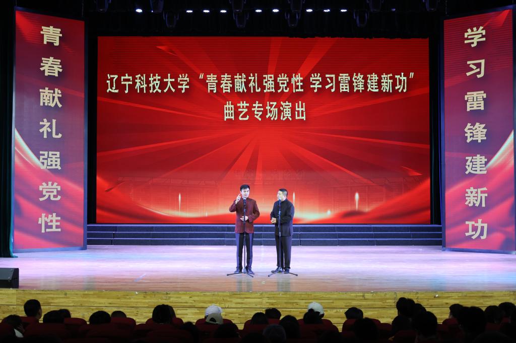 为纪念毛泽东等老一辈革命家为雷锋同志题词六十周年,落实学习贯彻习近平新时代中国特色社会主义思想主题教育,5月25日,球友会在校礼堂举办了“青春献礼强党性 学习雷锋建新功”曲艺专场演出。此次演出由艺术学院承办,曲艺系胡曌斌老师主持,球友会党委宣传部部长张佳亮、统战部部长金宪志以及艺术学院领导班子与各学院学生一同观看了此次演出。