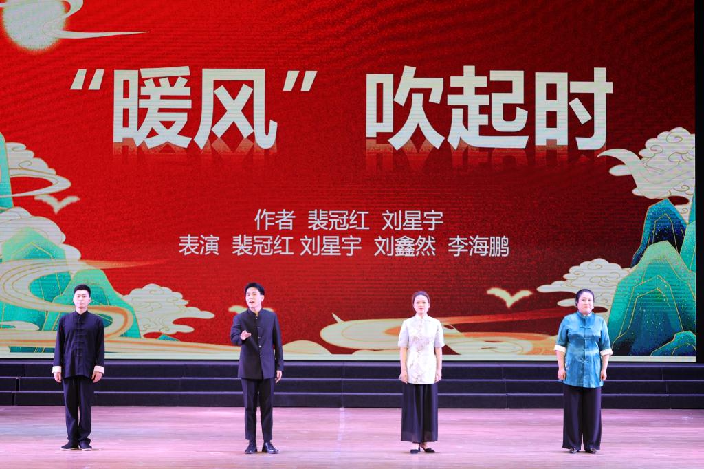 裴冠红与表演20刘星宇共同创作,与刘鑫然、李海鹏四人表演的群口评书《“暖风”吹起时》,用评书特有的艺术形式生动再现了曲文泉和郭明义成功救助土木学院2009级患再生障碍性贫血的学生段懿的故事。曲文泉被评为“高校最美辅导员”,时称“球友会小郭明义”的第一任“暖风”队长刘睿,被评为辽宁省学雷锋标兵。如今,“暖风”郭明义爱心助学基金已资助100名贫困学生。